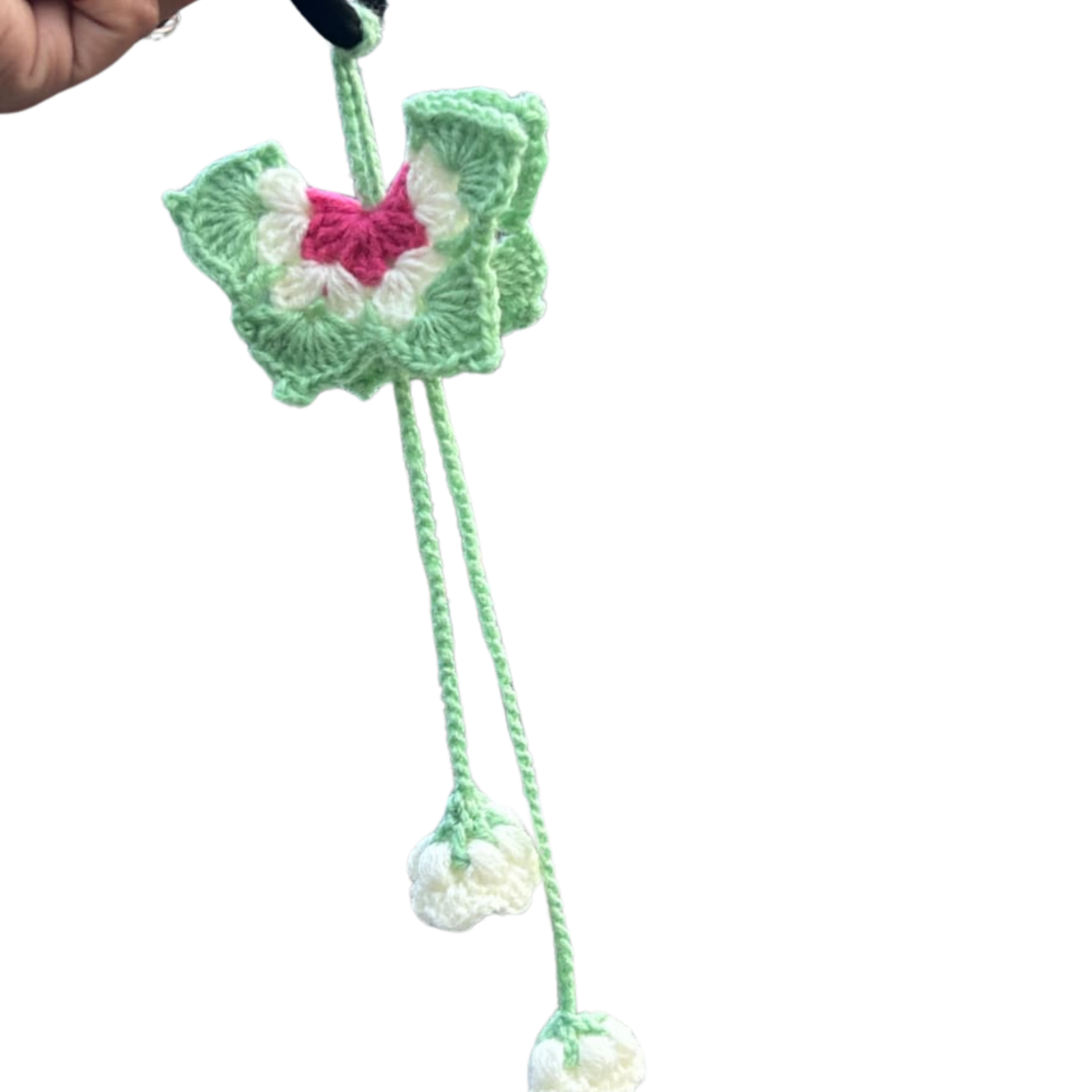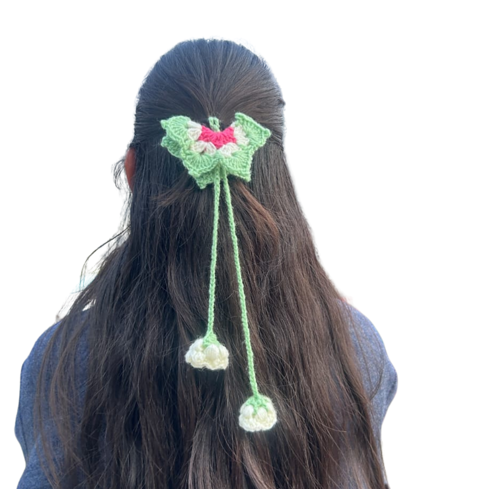 The Butterfly Crochet Hair Tie is a beautifully handcrafted accessory designed to bring a soft, playful, and elegant vibe to your hairstyle. Made with high-quality yarn, this hair tie features a detailed butterfly pattern paired with hanging floral crochet elements that enhance its overall charm.