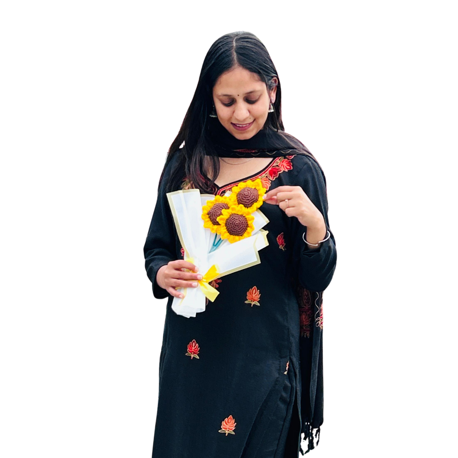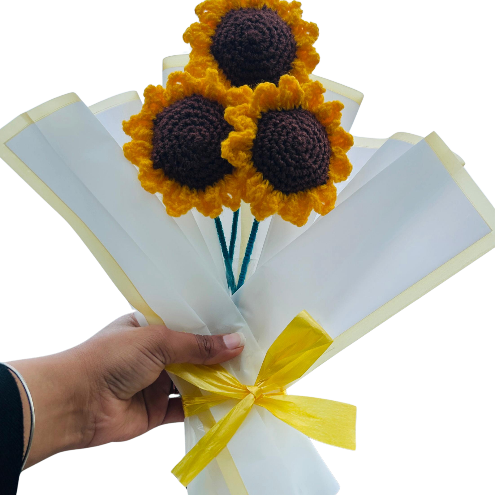 Handmade Crochet Sunflower Bouquet is a beautiful and everlasting floral arrangement crafted with soft yarn. Perfect for gifting on special occasions, it adds a warm, cheerful, and aesthetic touch without ever fading.