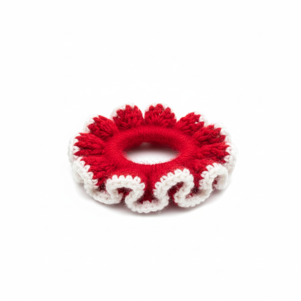 Add a playful pop of color with these hand-crocheted yarn scrunchies featuring cute ruffled petal edges and a comfortable inner elastic. The soft yarn minimizes tangles and creasing while offering a secure hold for ponytails, buns, and braids. Lightweight and durable, they suit everyday wear, workouts, or styling kids’ hair. Each piece is handmade, so minor variations make every scrunchie unique. Care: spot clean or gentle hand wash; lay flat to dry.