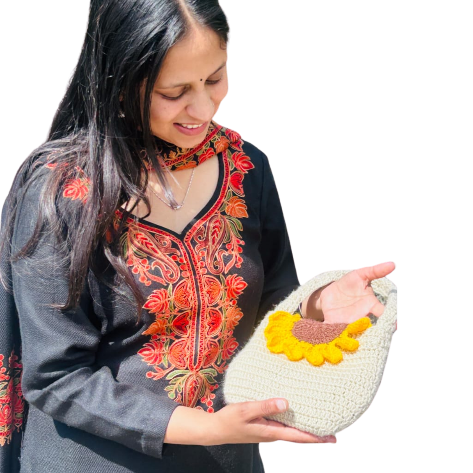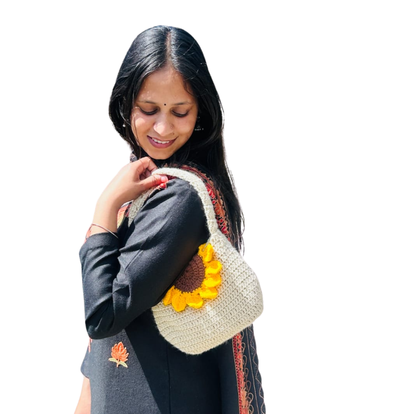 Handmade Sunflower Crochet Purse is a stylish and eco-friendly bag featuring a beautiful sunflower design. Lightweight, durable, and perfect for daily use or casual outings, it adds a fresh and aesthetic touch to your look.